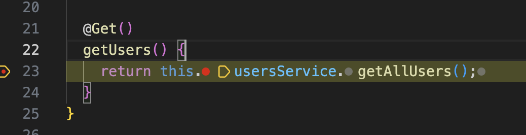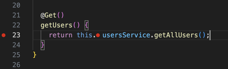 기존 서버가 켜져있으면 끄고, 'Start Debugging' 버튼을 누르거나 'F5'를 누르면 터미널이 디버그 모드로 실행된다.