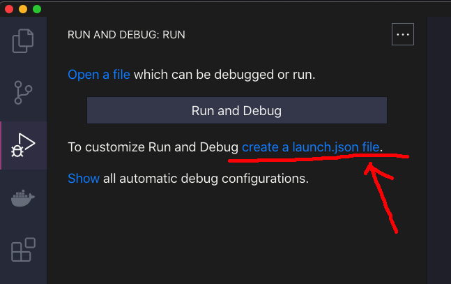 create a launch.json file 을 눌르면 .vscode 폴더아래 launch.json 파일이 생성된다.