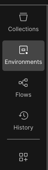 Postman의 왼쪽 탭에서 'Environments' 를 누른다.