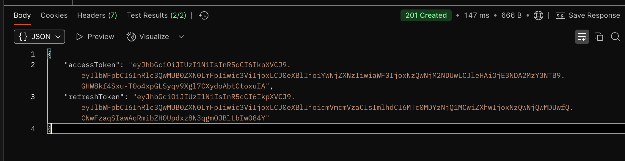 마찬가지로 AccessToken 갱신과 RefreshToken 갱신 API에도 Authorization 설정을 해주면 된다.