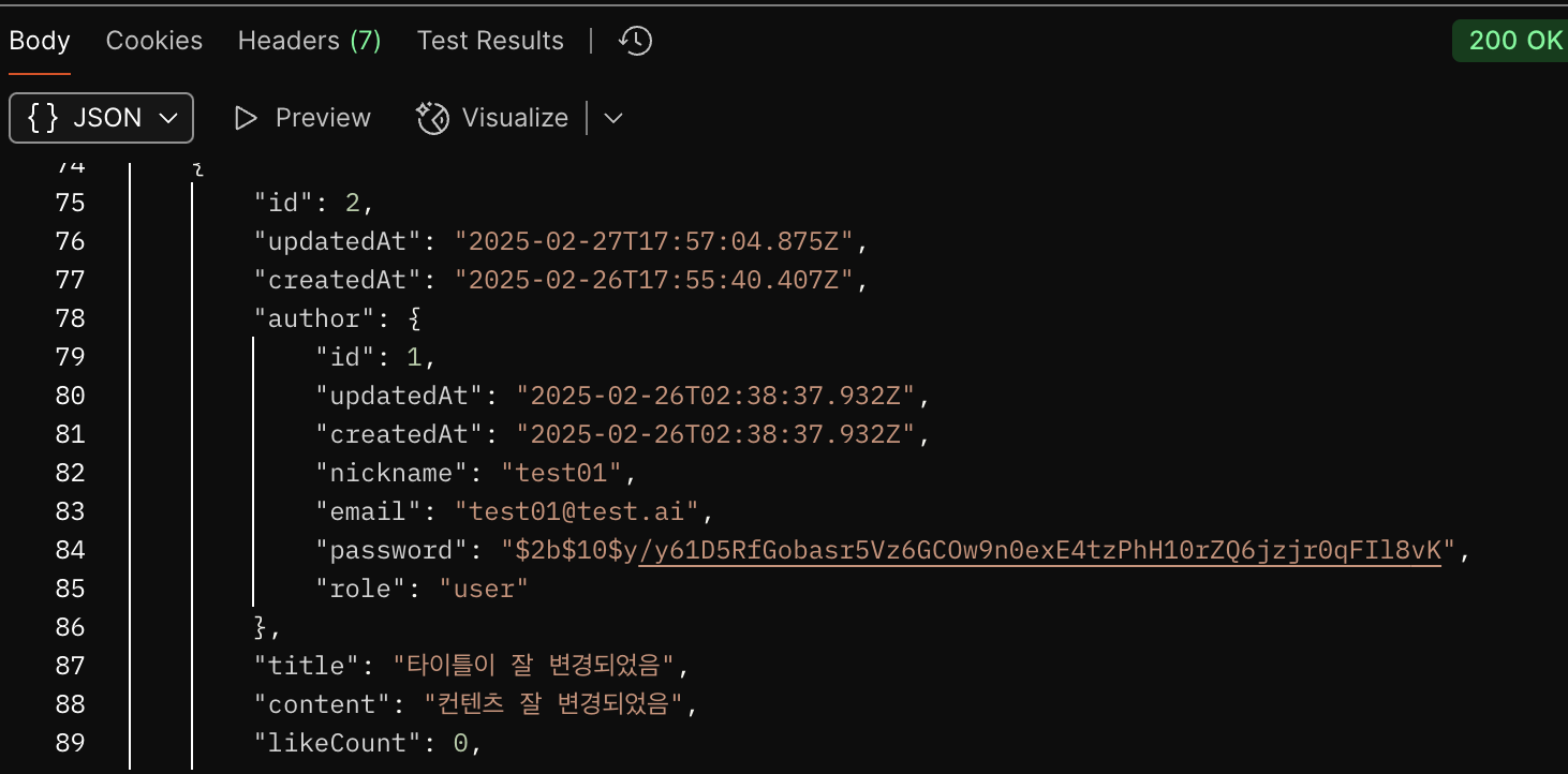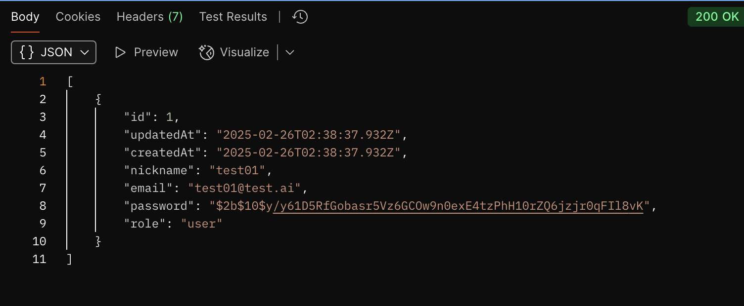 위와 같이 모든 UsersModel의 password는 제외된 것을 볼 수 있다.