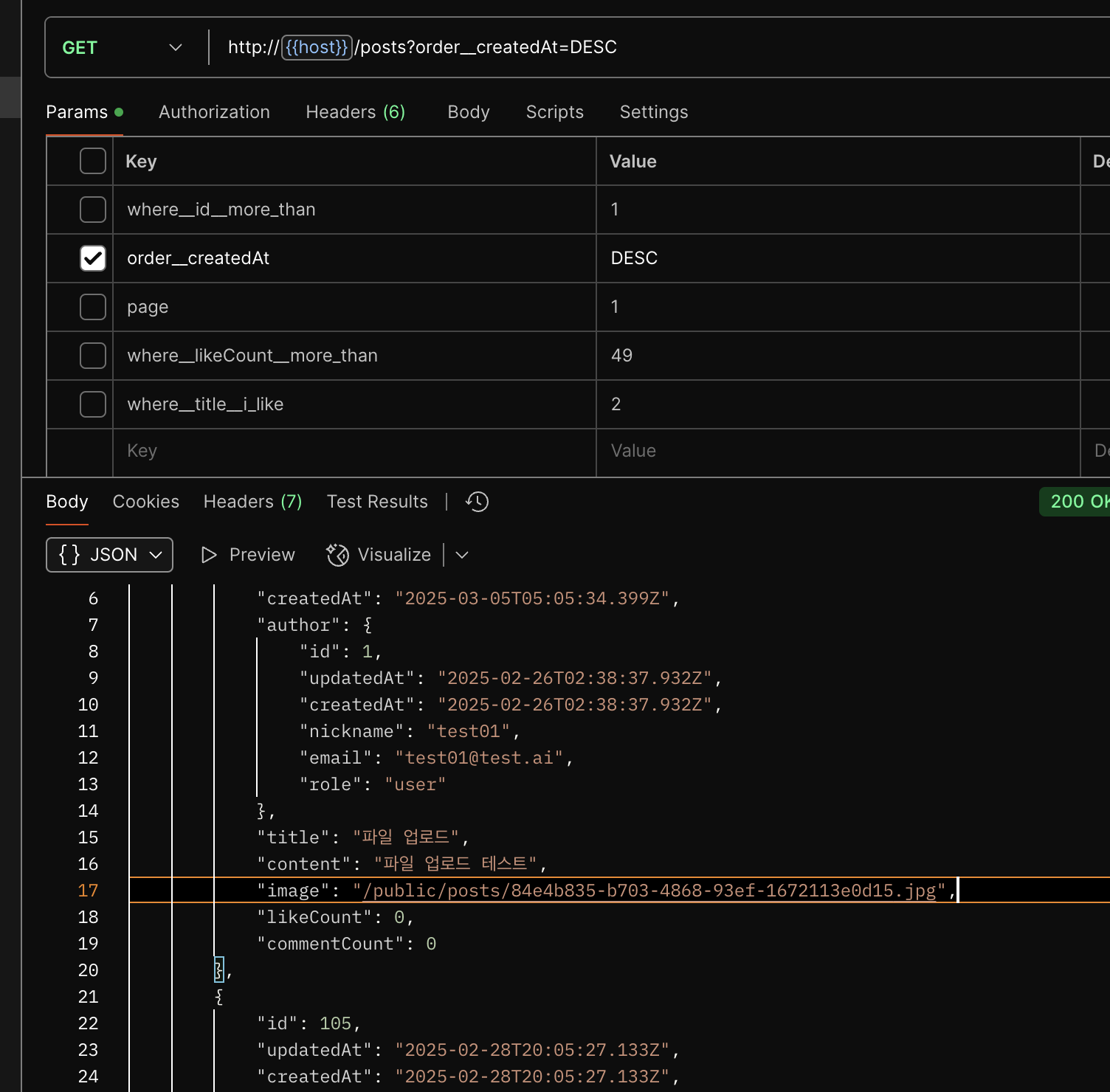 예를 들어 image에 xxx.jpg라면 @Transform 데코레이터에 의해 /public/posts/xxx.jpg가 된다.