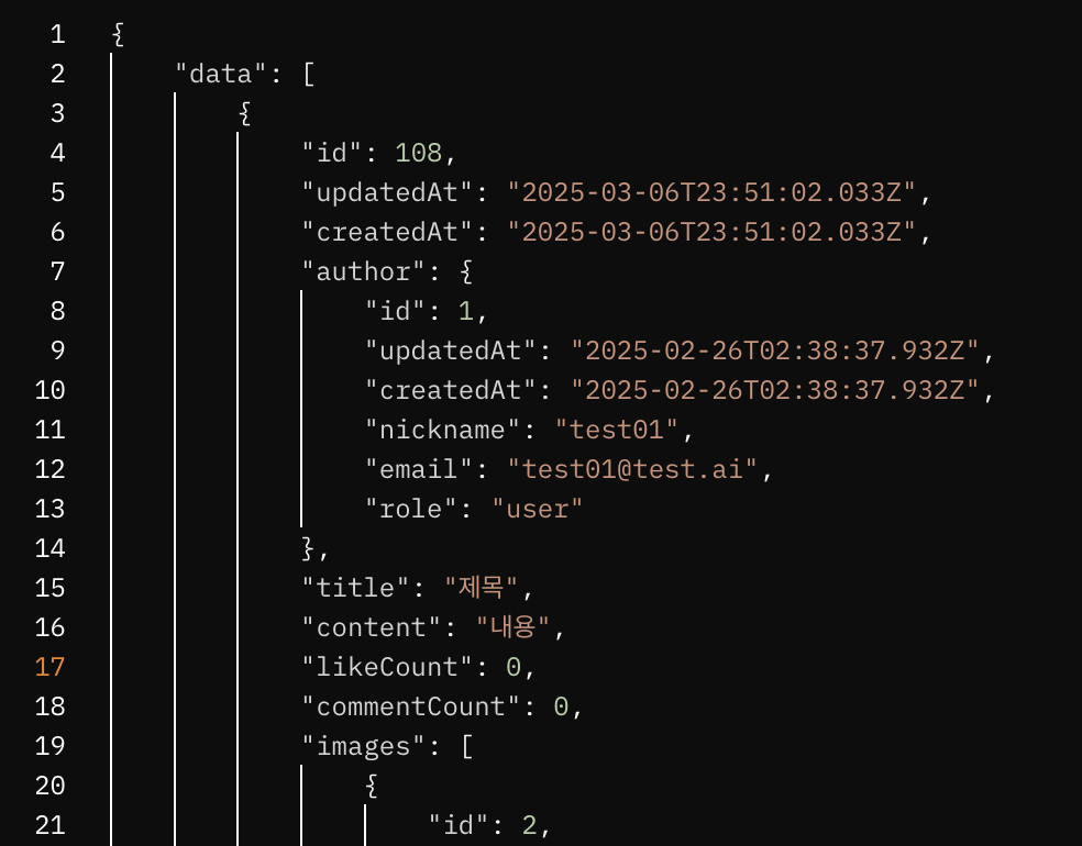 Images가 보여지도록 PostsModel의 Images 옵션에 egar true로 활성화