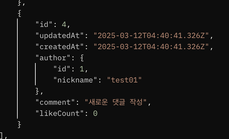 GET으로 확인 시 4번 댓글의 내용이 잘 적용된 것을 볼 수 있다.