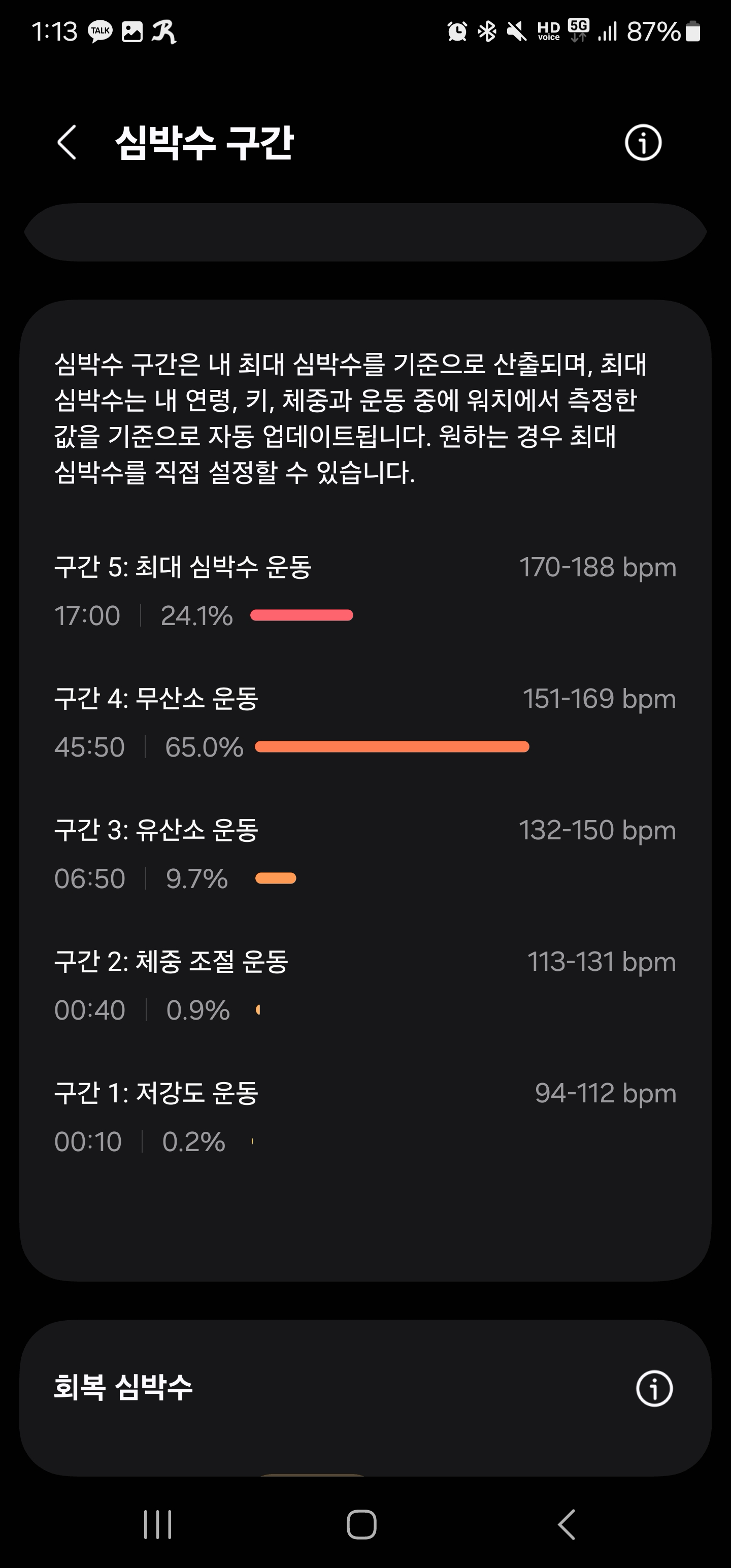 대화가 가능한 수준에서의 달리기로 진행했으나, 역시나 존4~5 운동이 되어버렸다.