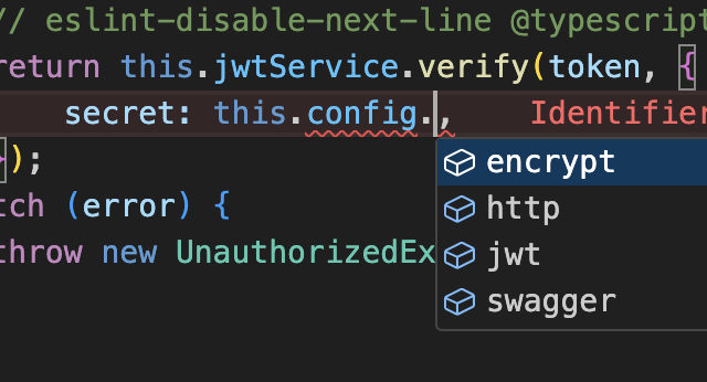 서비스에서 해당 .env의 값을 사용하려면 위와 같이 생성자에서 ConfigType을 주입한다.