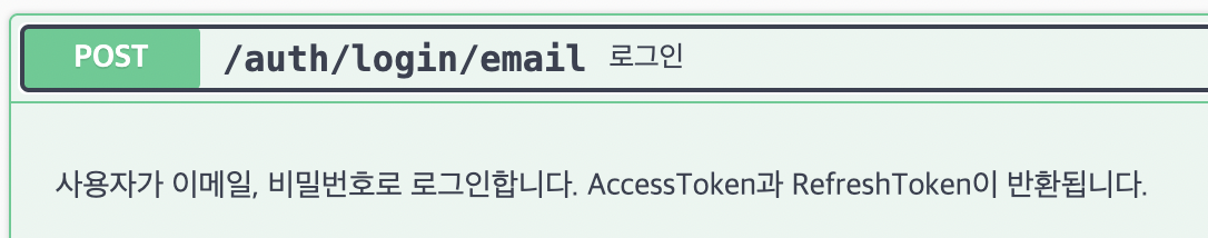 description: '사용자가 이메일, 비밀번호로 로그인합니다. AccessToken과 RefreshToken이 반환됩니다.'