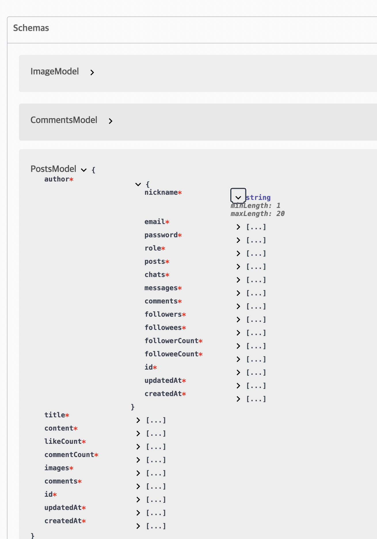 설정 후엔 위와 같이 모든 Schema들의 속성이 보이게 된다. (참고로 CLI 플러그인으로 자동으로 스키마들이 보이게 하려면, .dto.ts 나 .entity.ts 이름으로 작성되어야 한다.)