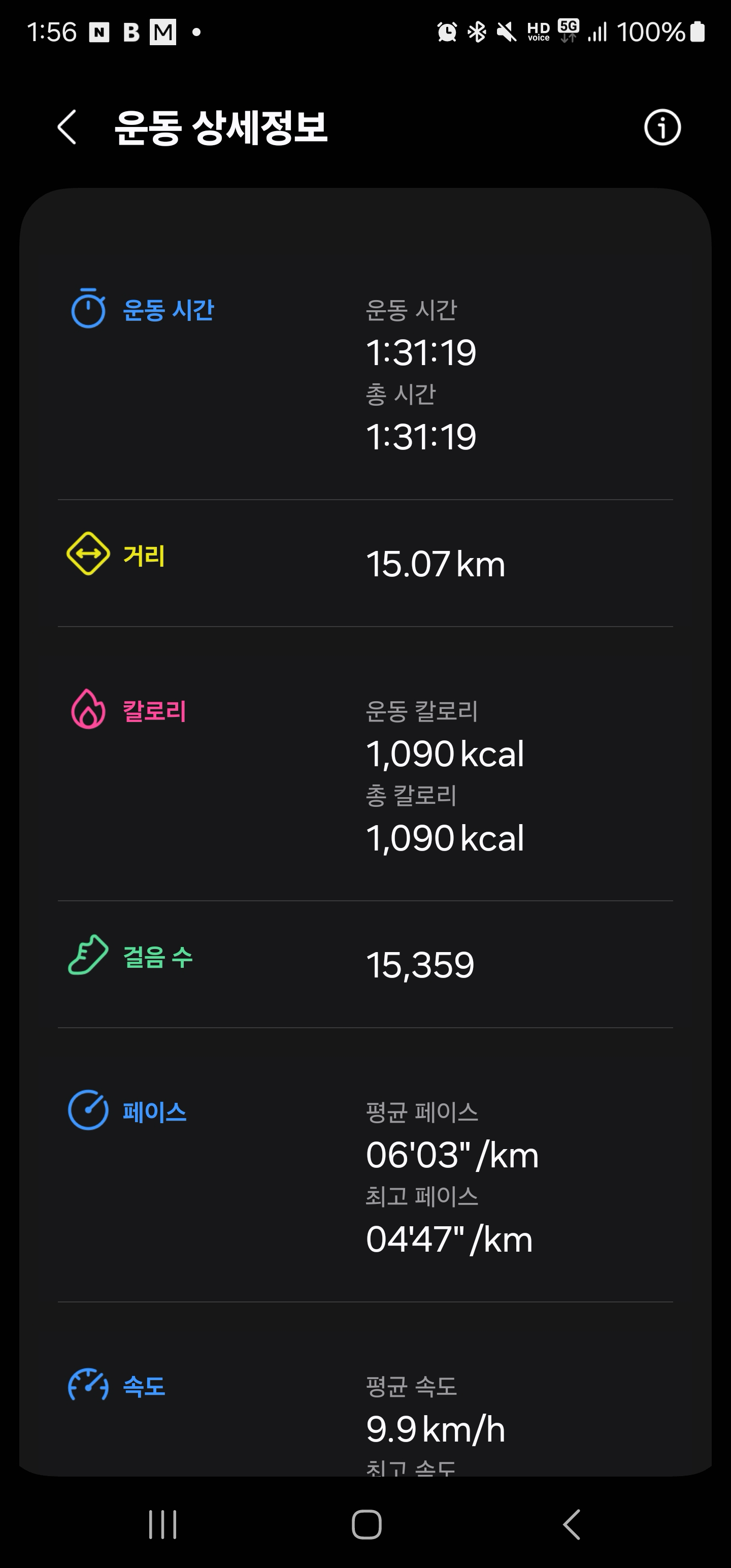 페이스를 늦추고 15km를 달렸다.