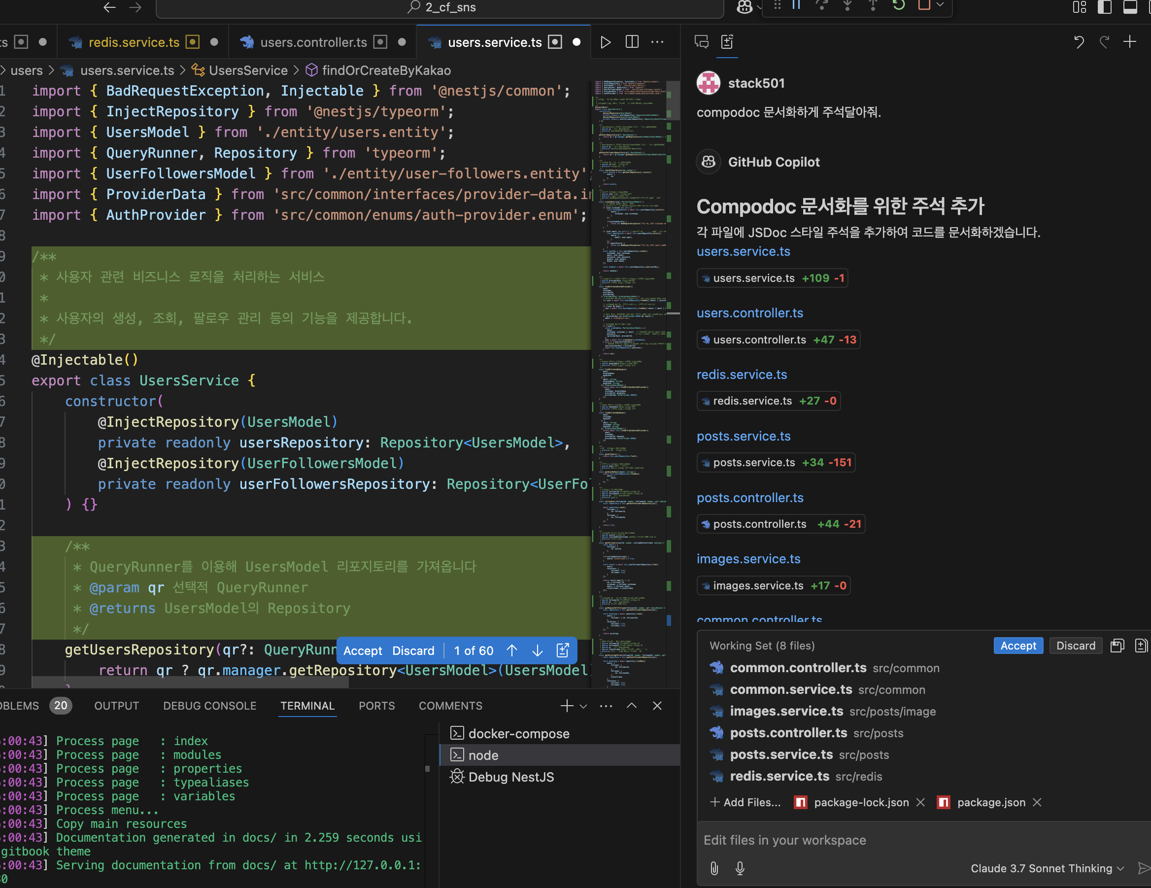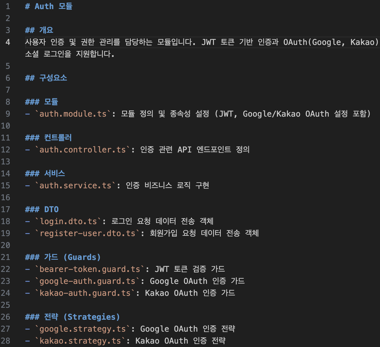 README.md가 아닌 Compodoc 서버 문서화에 작성될 주석들을 코파일럿에게 요청하면 아주 깔끔하게 정리하여 준다.