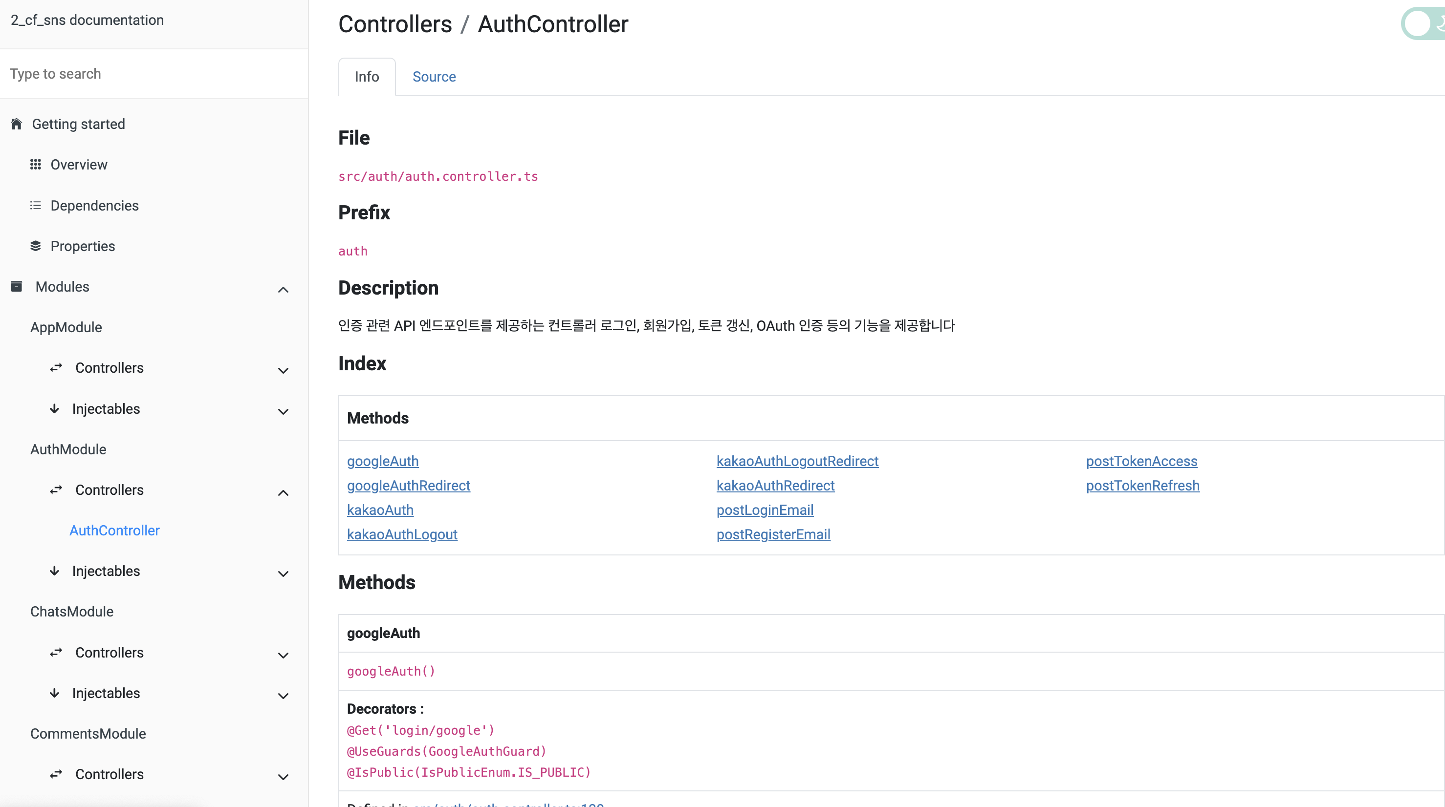이런 생각을 나만 했던 것은 아닌지 NestJS에서는 기존 Angular 기반의 Compodoc이라는 오픈소스로 아주 쉽게 문서화할 수 있도록 도와주는 패키지가 존재한다.