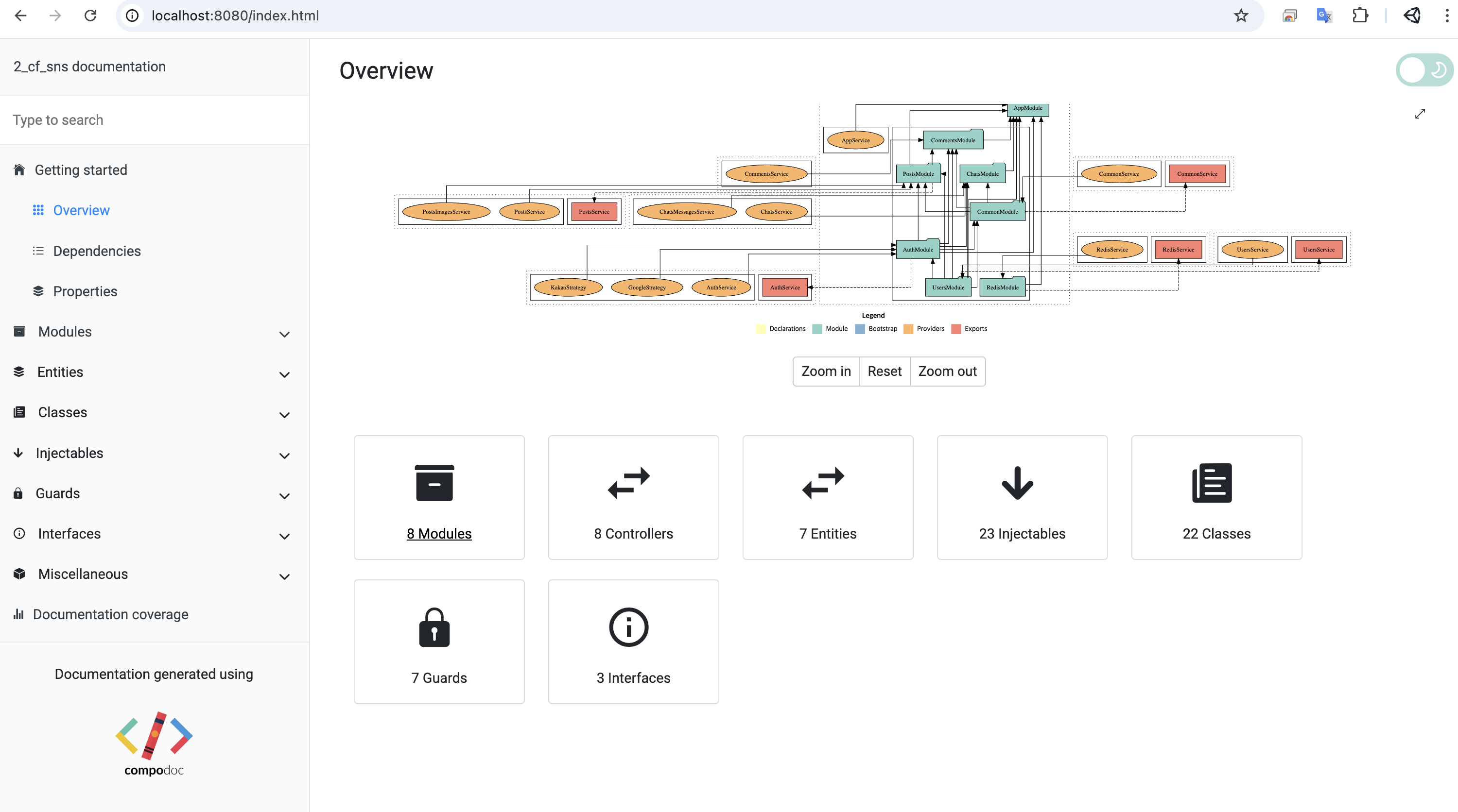 이런 생각을 나만 했던 것은 아닌지 NestJS에서는 기존 Angular 기반의 Compodoc이라는 오픈소스로 아주 쉽게 문서화할 수 있도록 도와주는 패키지가 존재한다.