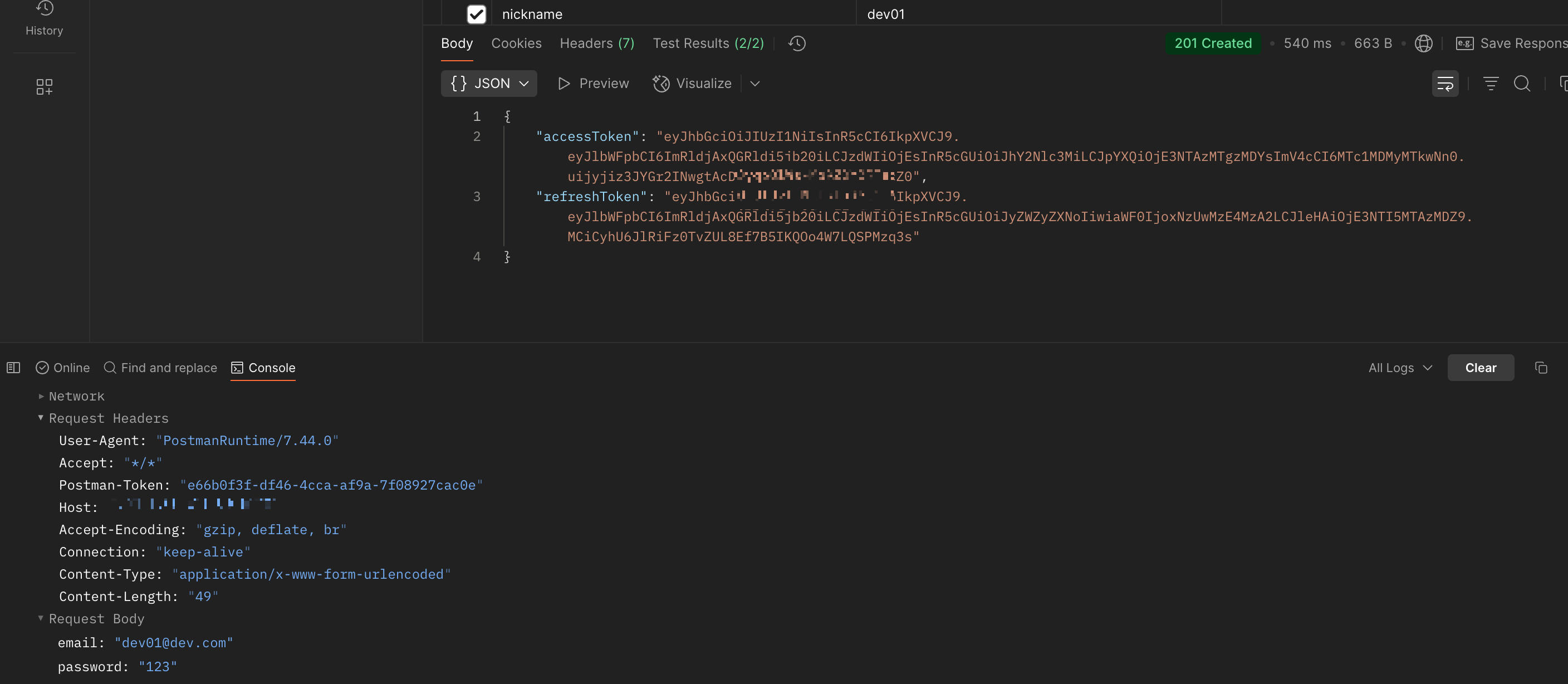로그에도 특별히 이상이 없었고, 접속 테스트까지 문제가 없었다면 이제 본격적으로 Postman 테스트를 진행해볼 수 있다.