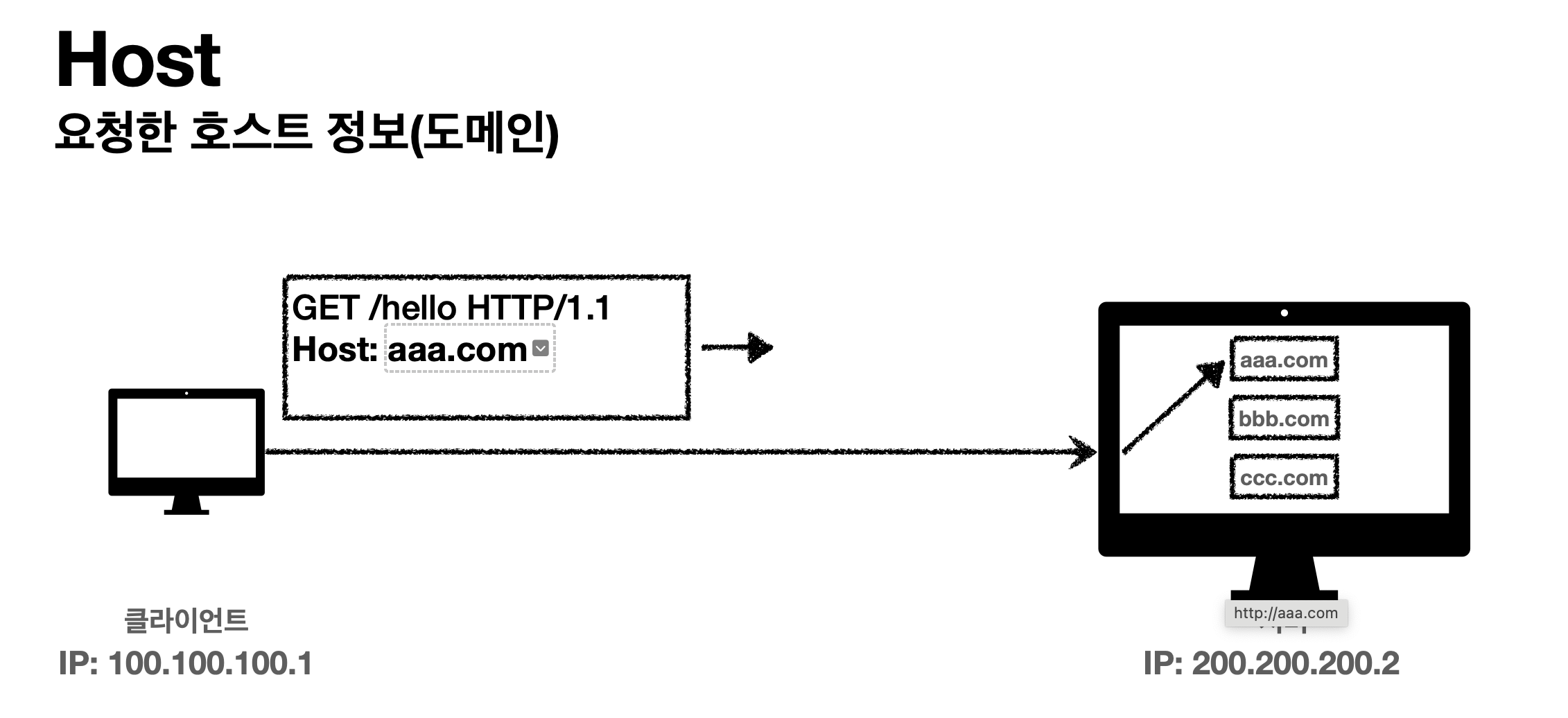 Host가 반드시 필요한 이유는 위와 같이 서버에는 가상호스트를 통해 여러 도메인을 한번에 처리할 수 있는 서버가 있을 수 있다.
