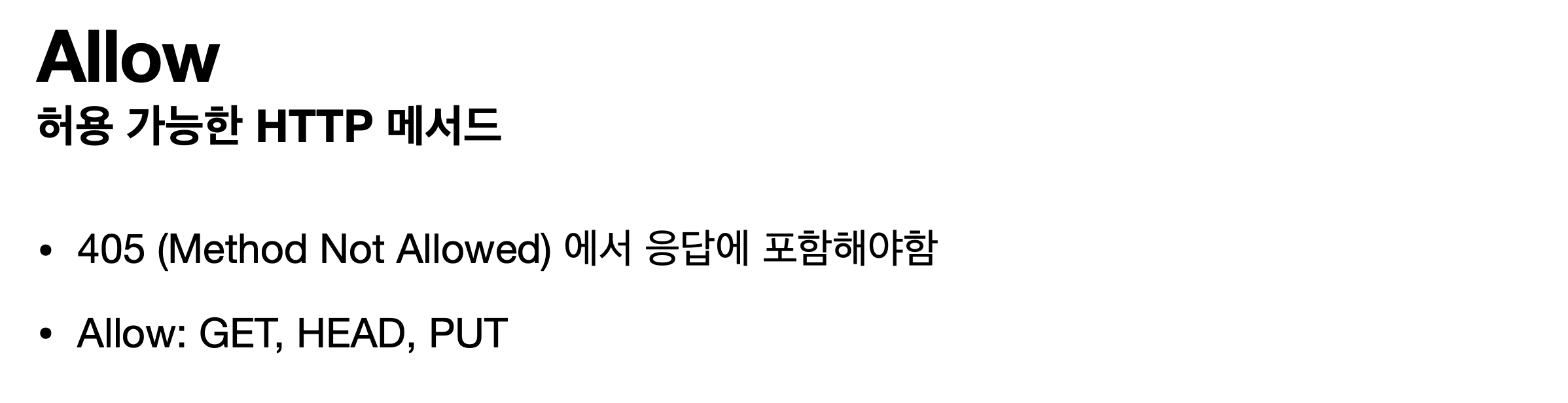 - Allow : 허용 가능한 HTTP 메서드