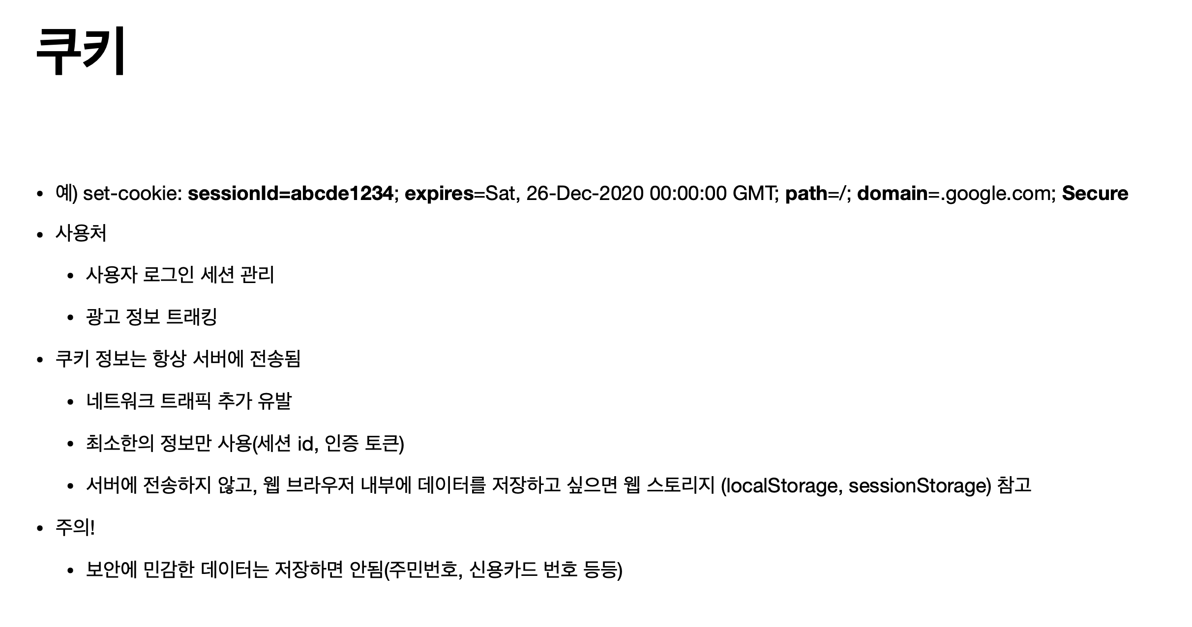 클라이언트가 서버로부터 받은 쿠키를 저장하고, HTTP 요청 시 해당 쿠키 데이터를 포함하여 전송한다.
