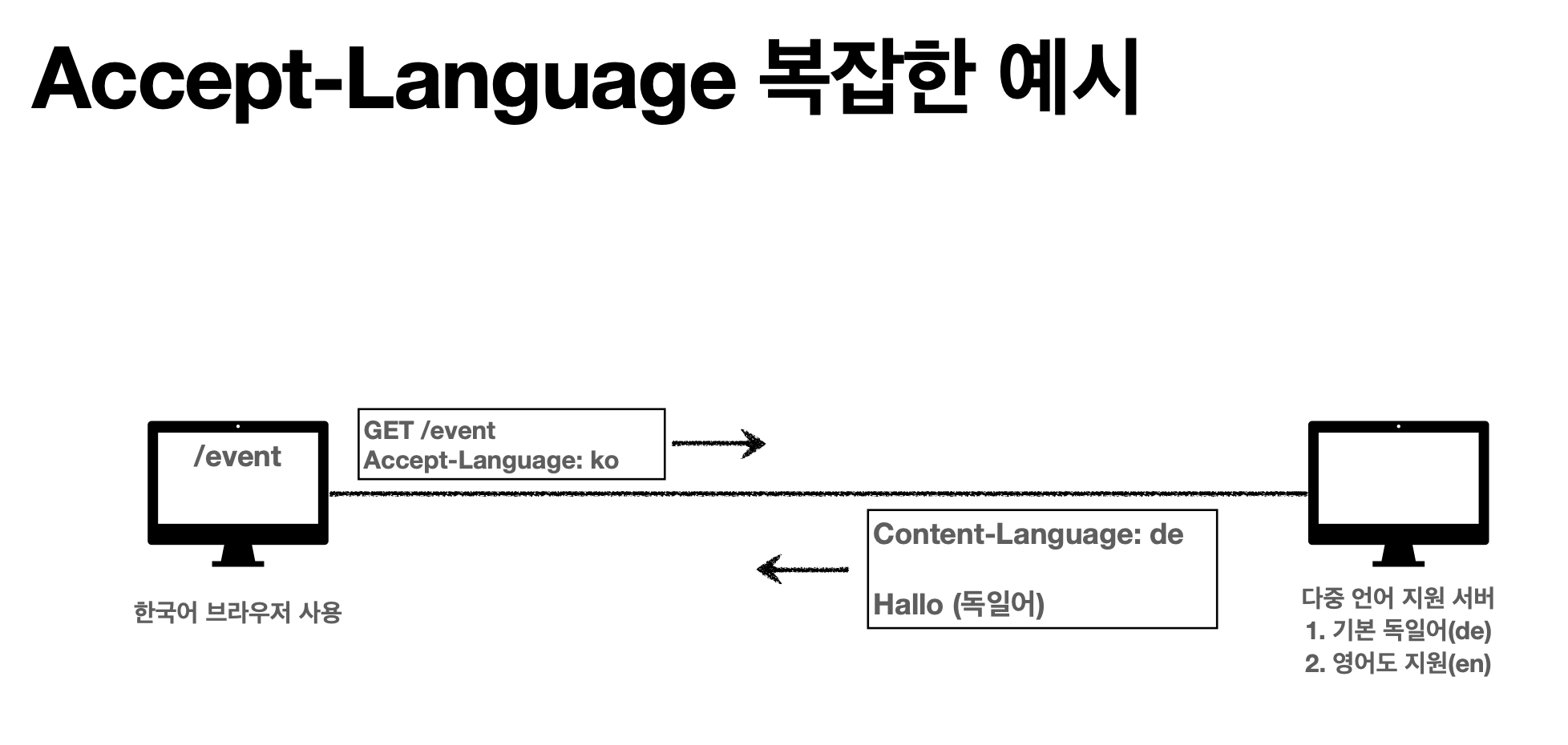 만약 서버에서는 기본적용은 독일어이고 영어까지만 지원하지만, 프론트에서 한국어를 요청하면 어떻게 될까? 이런 경우 우선순위를 두어 적용할 수 있다.