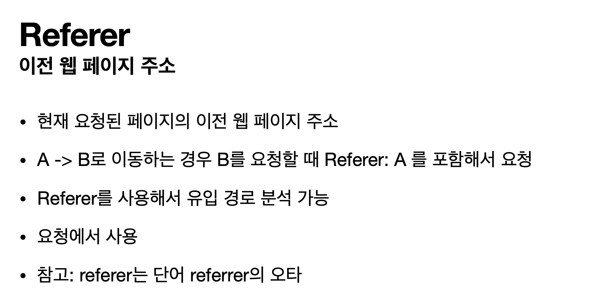 Referer는 이전 웹 페이지 주소를 알 수 있기 때문에 유입 경로 분석이 가능하므로 실무에서 자주 쓰인다.