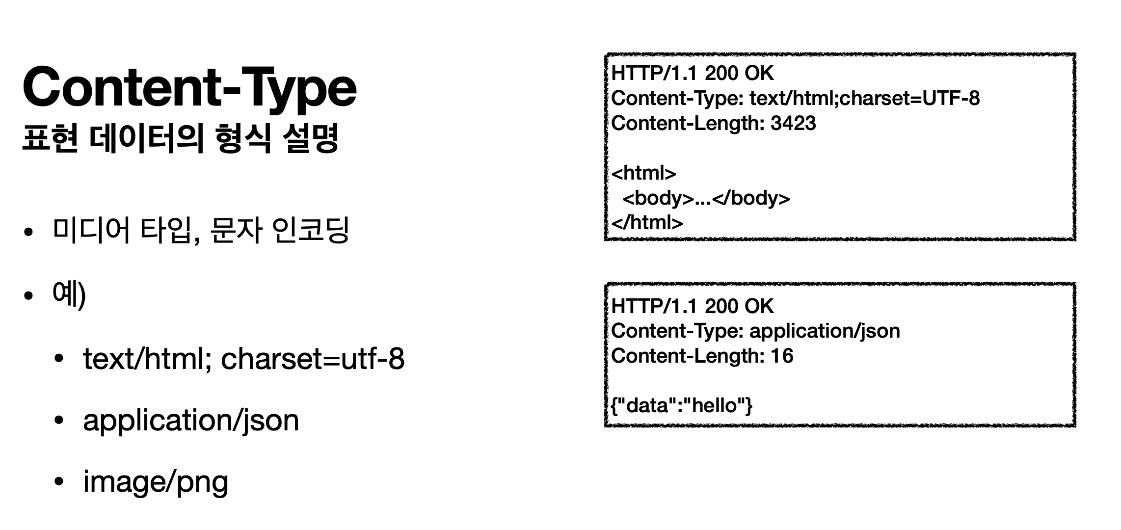 표현 헤더에서 데이터를 어떤 방식으로 보낼지에 대한 부분이다.