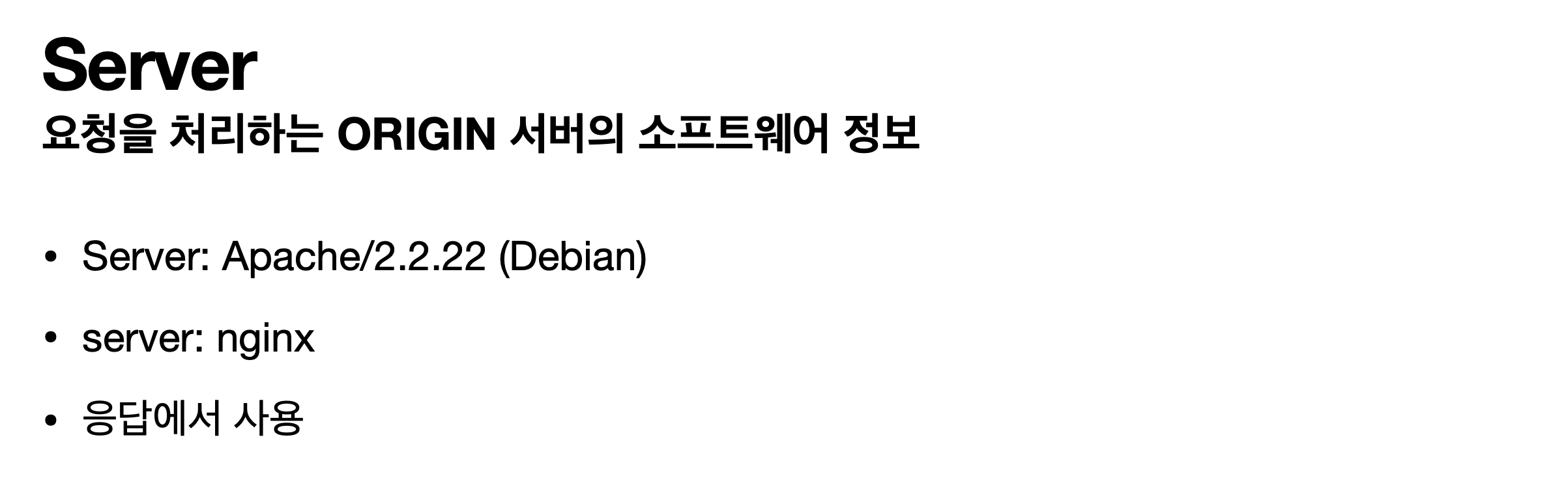 - Server : 요청을 처리하는 Origin 서버의 소프트웨어 정보