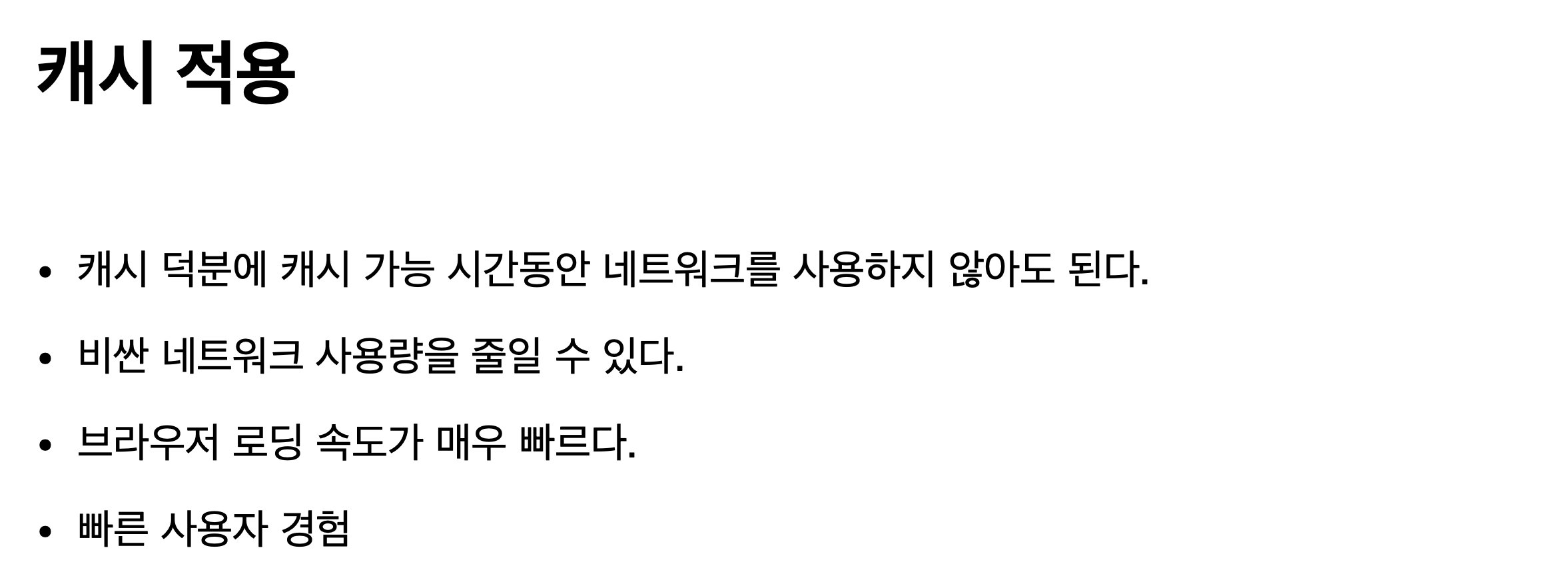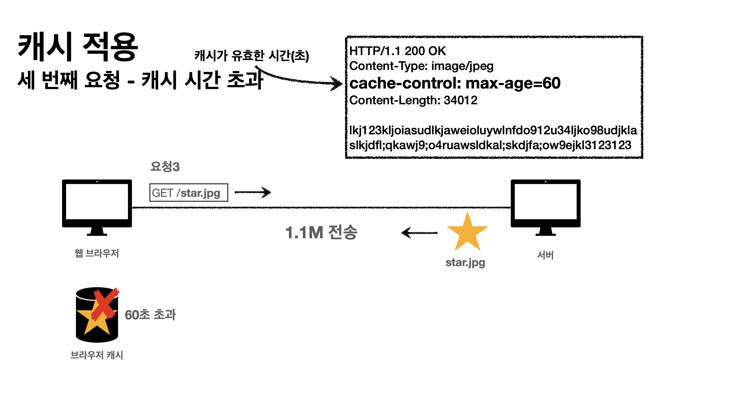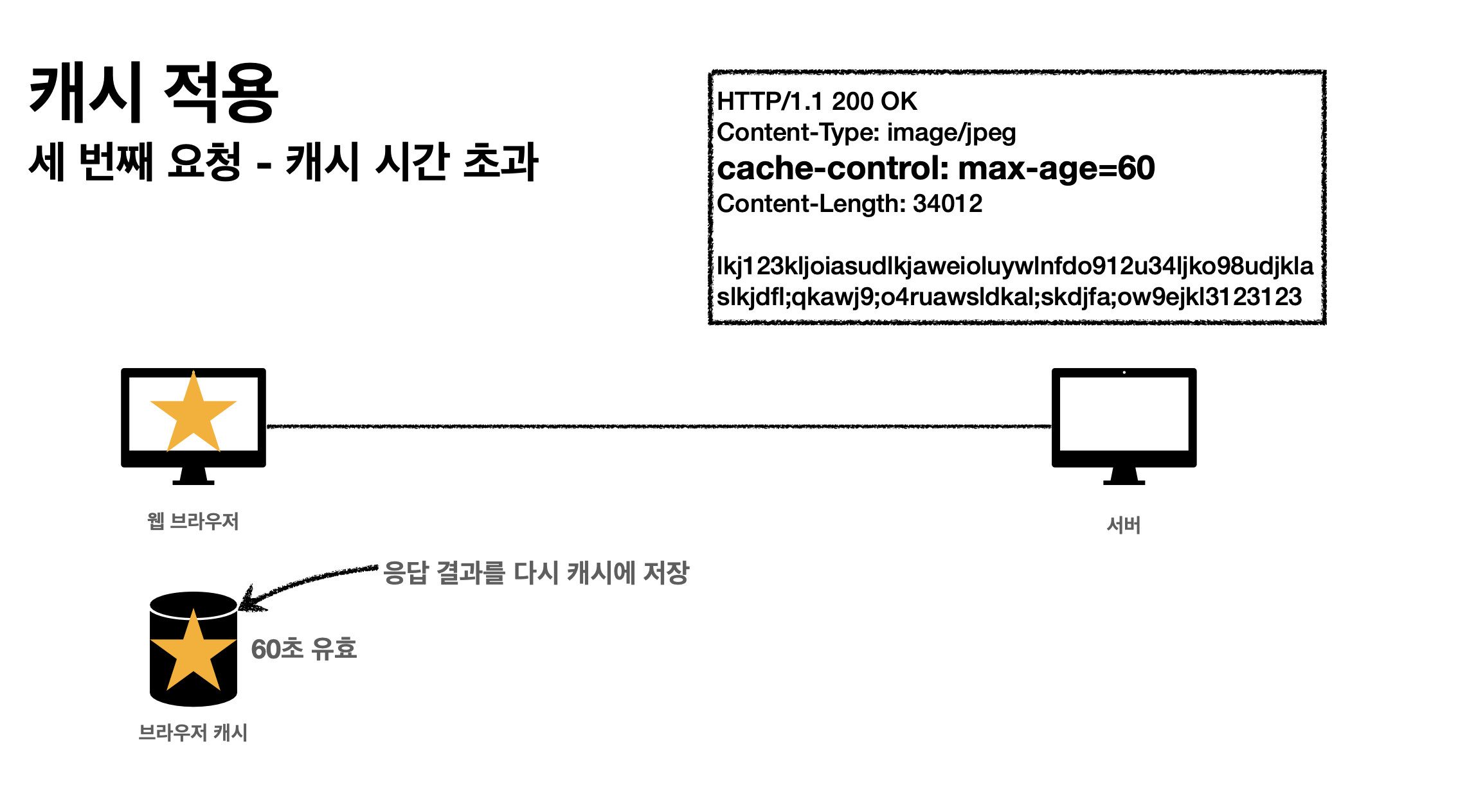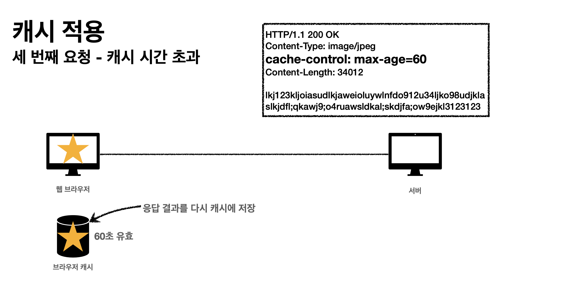 이후 캐시 시간이 초과되면 다시 서버로부터 리소스를 응답받은 후 응답 결과를 다시 캐시에 저장한다.