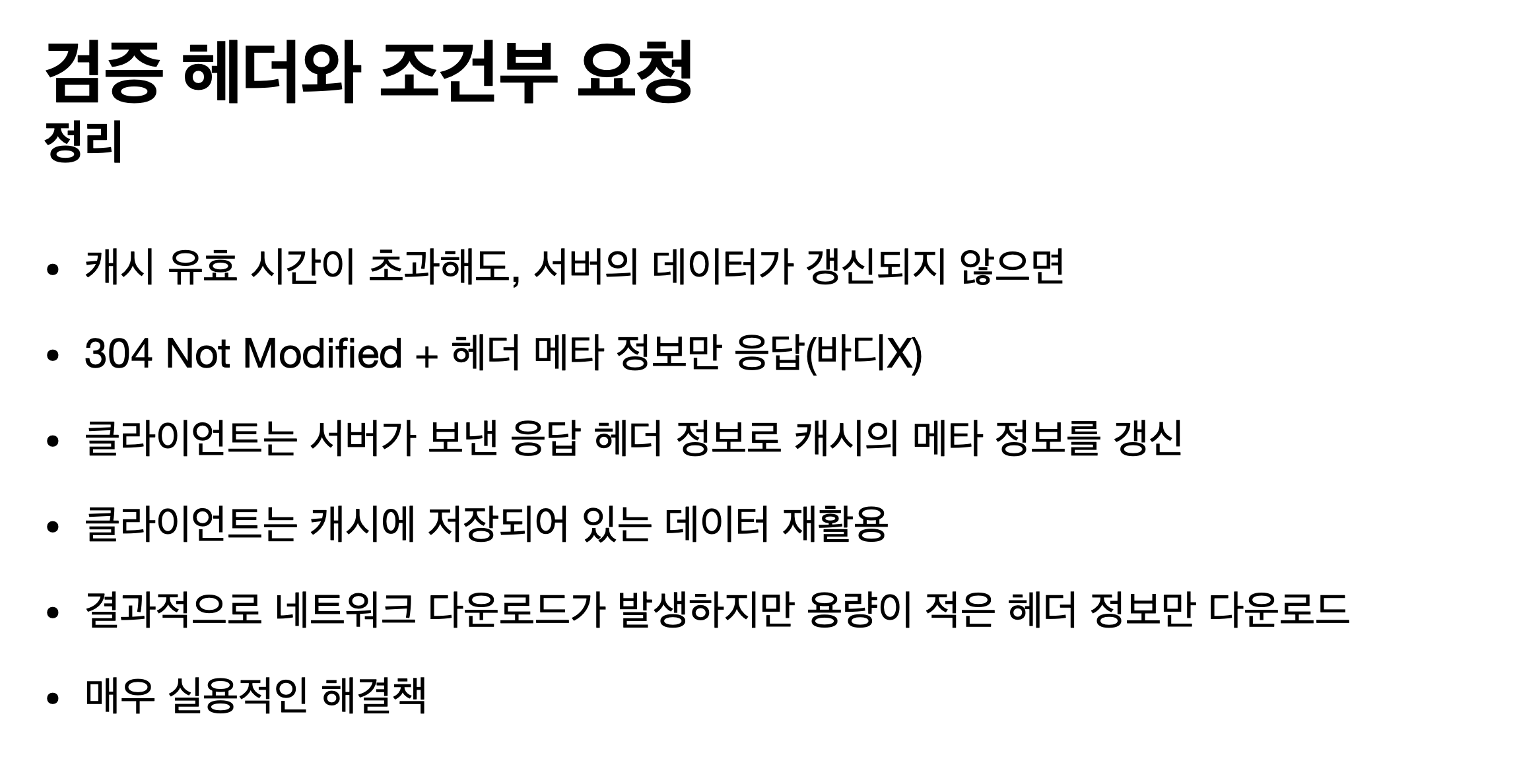 이러한 부분을 해소할 수 있는 것이 검증 헤더와 조건부 요청이다.