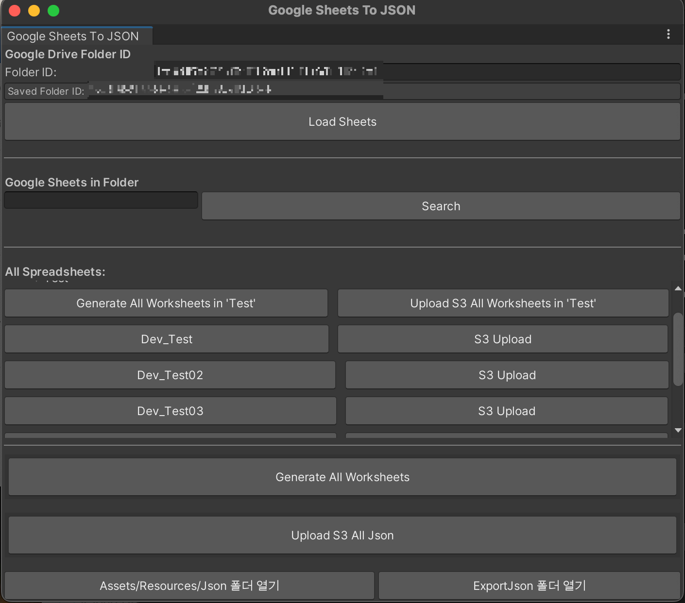 생성된 JSON 과 AES Key를 AWS S3에 각각 버킷을 만들어 직접 드래그하여 업로드 할 수 있지만, 나는 위쪽 사진들처럼 JSON을 변환하거나, AWS Key를 만들어주는 에디터 툴에 버튼을 만들어 AWS S3 버킷에 업로드 하도록 구현하였다.