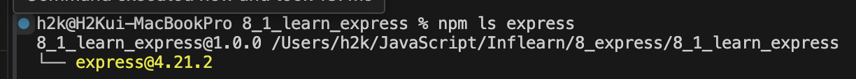 npm ls 키워드를 이용하면 해당 패키지가 설치되어있는지 확인할 수 있다.