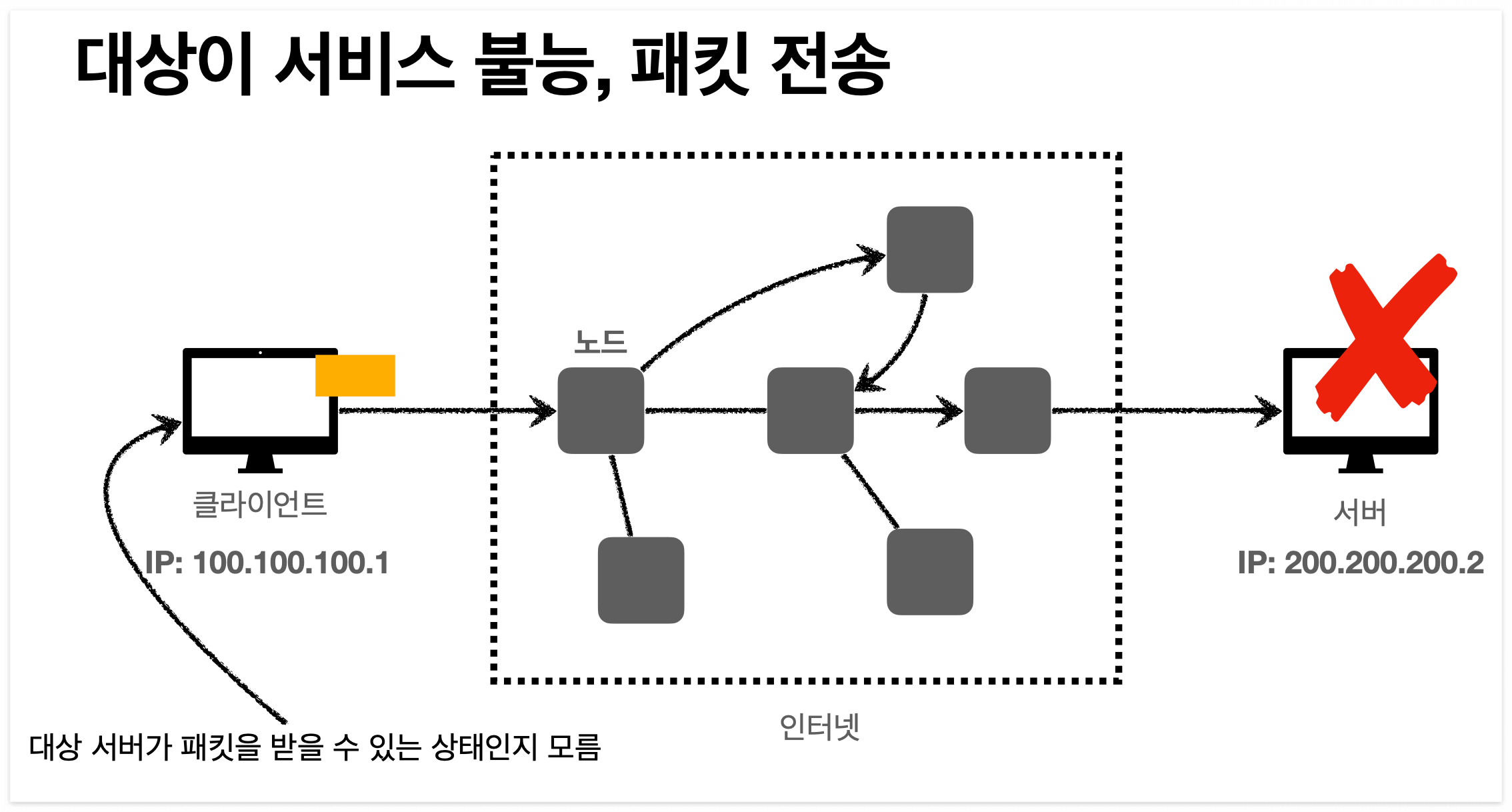 - 패킷 받을 대상이 없거나 서비스 불능 상태여도 패킷을 전송