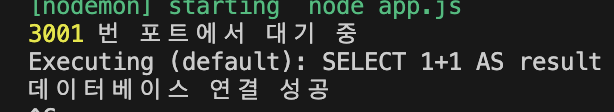 sequelize.sync 하는 부분이 sequelize가 데이터베이스에 접근해 연결하는 로직이다.
