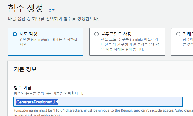 코드를 간략히 설명하자면 AWS API Gateway에서 요청하면 lambda_handler 함수를 통해 사전 서명된 URL을 반환하는 코드이다.