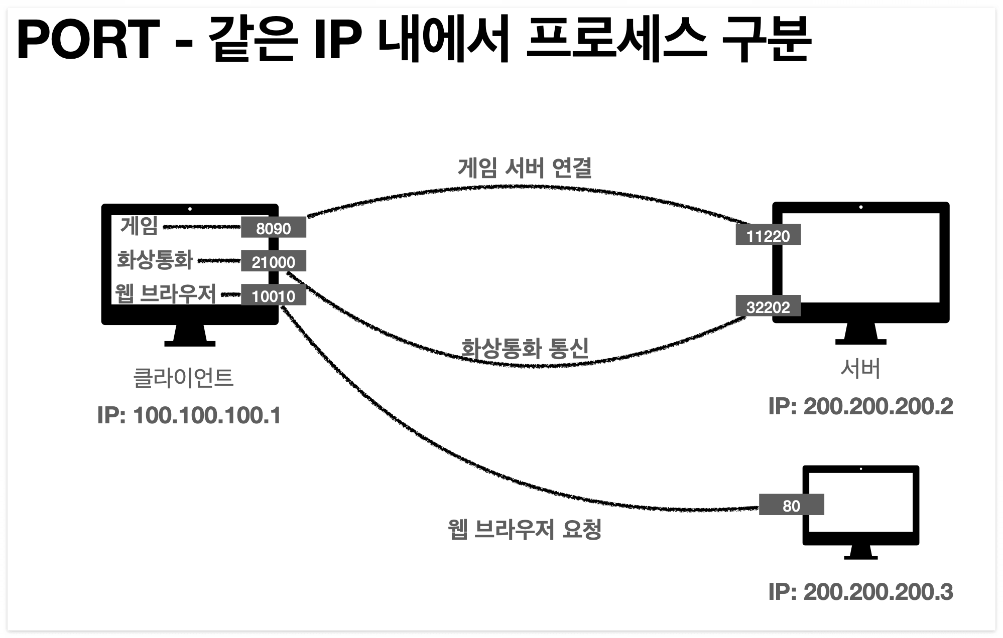 같은 IP 내에서 여러 프로그램이 실행되어 통신된다면 기존 IP만으로는 해결될 수 없기 때문에, 이러한 부분은 PORT로 해결할 수 있다.