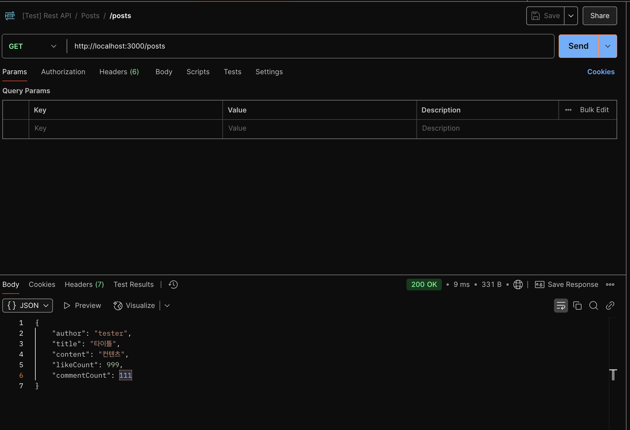 참고로 Postman은 굳이 웹브라우저에서 서버 관련 작업을 실행할 필요없이 빠르고 간단하게 실행해볼 수 있는 툴이라고 생각하면 된다.